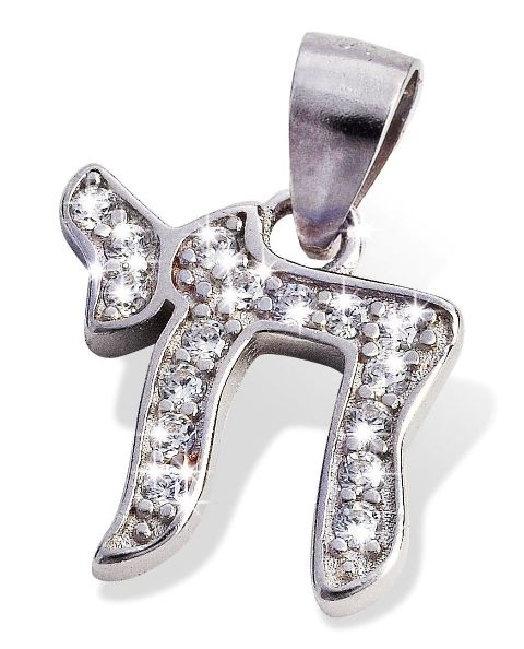 Een schitterende zilveren hanger Chai (=leven). 12mm